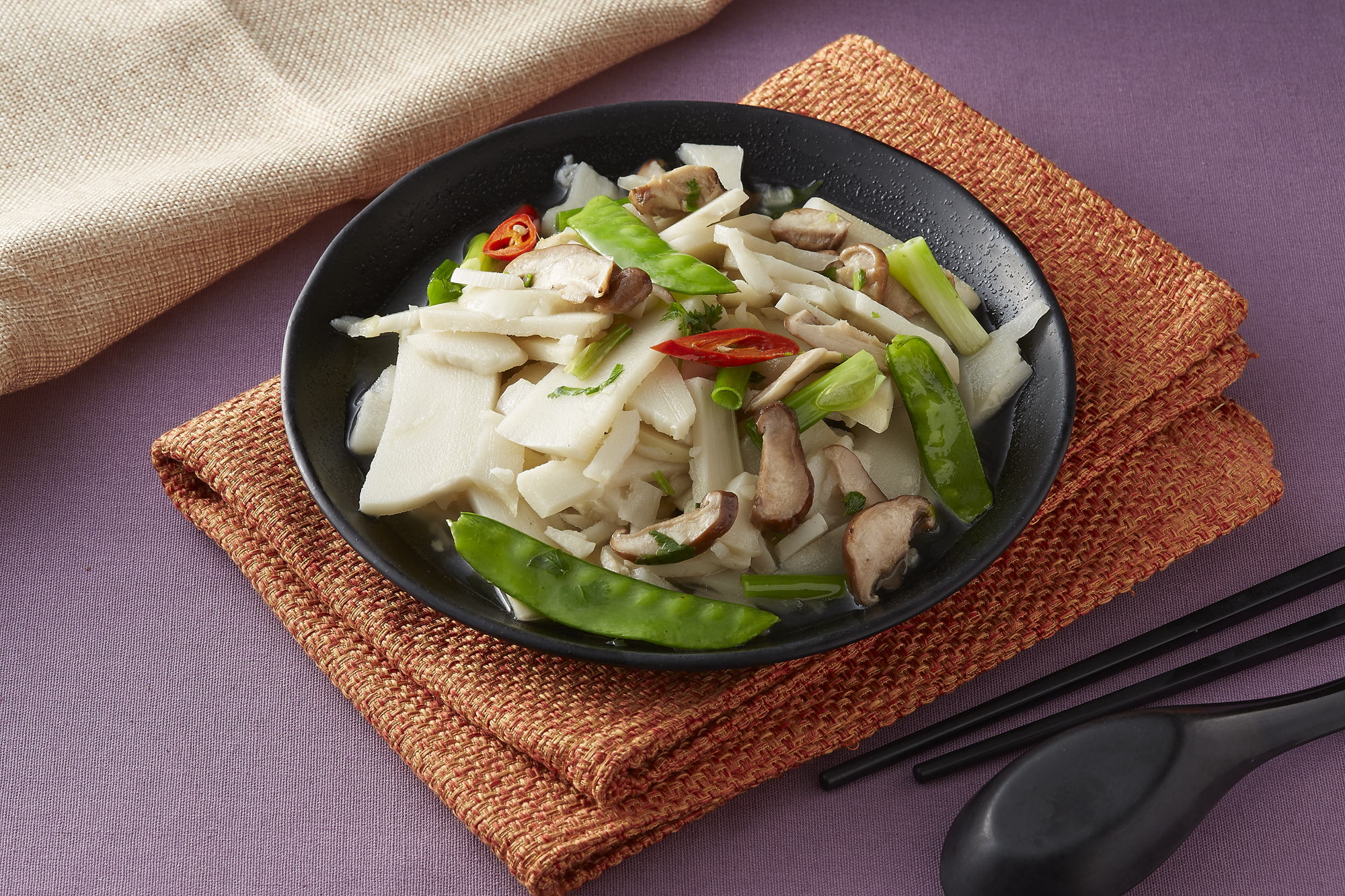選用新鮮麻竹筍切片後,大火快炒,吃起來別有一番風味。